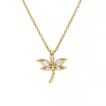 Phụ Nữ Bijoux Pour Femme Mạ Vàng Con Chuồn Mặt Dây Chuyền Kim Cương Thời Trang Trang Sức Dây Chuyền