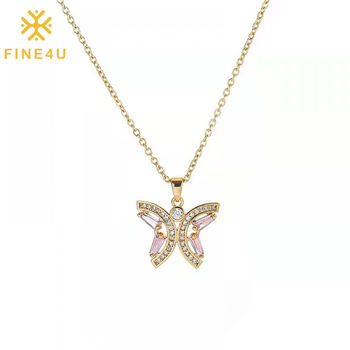 Không có đồ trang sức xỉn màu thời trang sang trọng màu hồng phụ nữ vàng mạ đồng Kim Cương bướm Vòng cổ